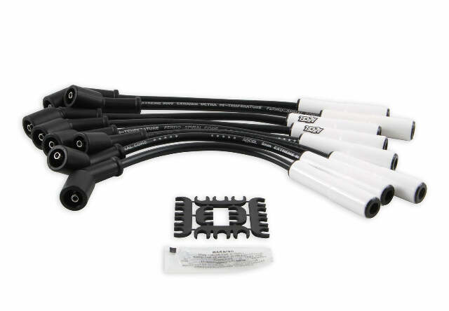 Extreme 9000 Ceramic Boot Spark Plug Wire Set; 8mm Ferro-Spiral Core Wire; 12 in. Total Length; Straight Boot; 500 Ohms Per Foot; Black;
