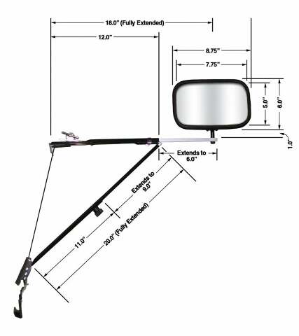Deluxe Door Mount Mirror; Extends 18 in.; Fits Left Or Right;