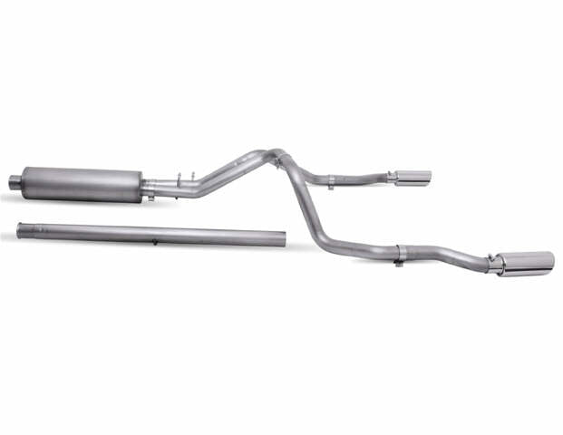 For the enthusiast who wants an awesome look and Mild sound this Dual Split Cat back exhaust is for you. Gibson Exhaust Systems decrease backpressure and produce more torque and increased horsepower while maintaining similar factory interior sound levels. Typical gains average of 15-20 horsepower. Stainless dual Tip exit straight out the back. Works with most bumpers, roll pans and trailer hitches. Exhaust sound is louder under towing conditions. Hassle Free bolt- on installation. No welding required. Backed by a Lifetime Limited Warranty.