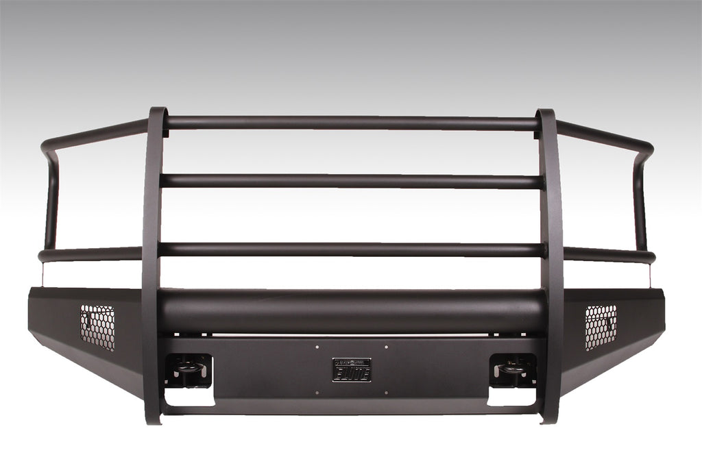 Elite Front Bumper; 2 Stage Black Powder Coated; w/Full Grill Guard; Incl. Light Cut-Outs And Tow Hooks;