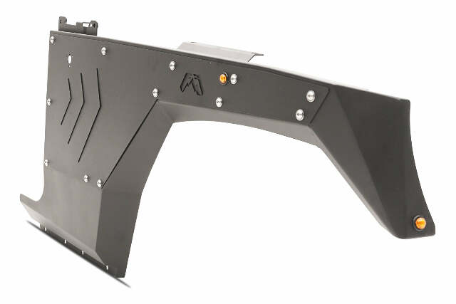 From Concept to Reality...Building off the radical design of 'The LEGEND', The Fab Fours Front Replacement Fender focuses on aggressive styling, ease of installation, and Modularity. The JL2000 is the base to the Fab Fours Fender System and its completely bolt-on design includes a removable 16 gauge laser cut 'skin' for customization options and future expansion. Optional expansion parts include Front Fender Flare (JK1003-1), Front Full Width Flare (JK1006-1), Gill Box (JK1004-1)