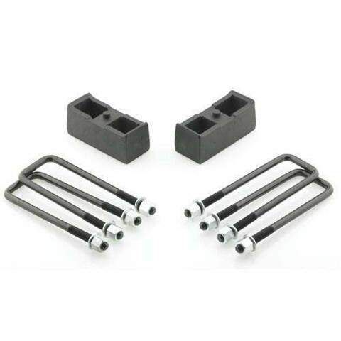 Level Lift Block With U-Bolt Kit; Rear; Lift Height 3 Inch; 2 Lift Blocks; 4 U-Bolts; 8 Thick Flat Washers; 8 U-Bolt Nuts;