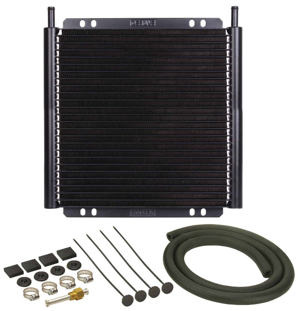 A step up from Tube & Fin type coolers, this Plate and Fin cooler features strong furnace-brazed construction, 7/8" wide plates, 3/4" embossed turbulators which maximize heat transfer while also minimizing pressure drop. This unit is perfect for full size cars trucks and SUVs with medium to light-heavy duty use and consistent towing. It greatly extends transmission life by preventing heat-related transmission failures, and improve shifting performance. This kit comes with a complete transmission cooler hardware kit to easily install onto vehicles with 5/16" transmission cooler lines.