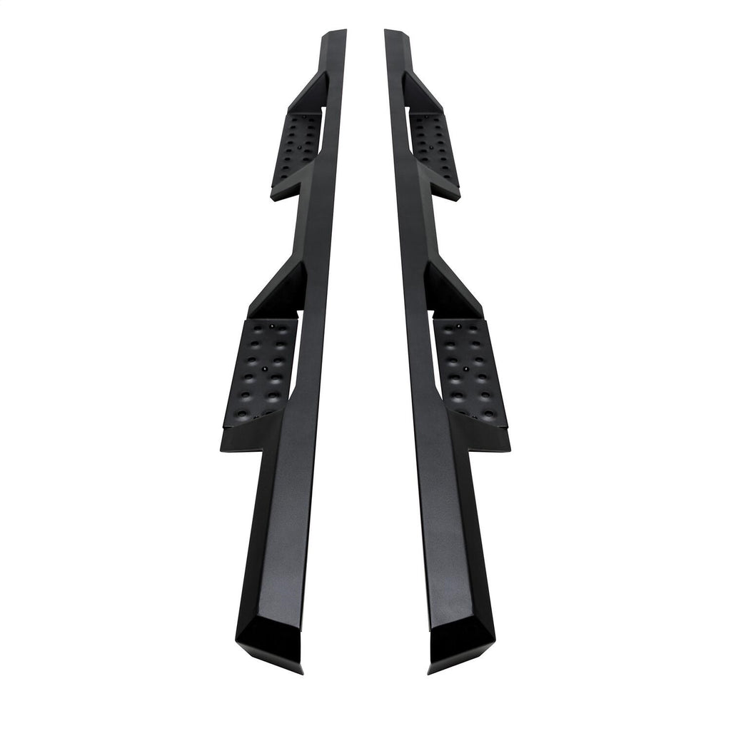 Westins HDX Drop Nerf Step Bars provide the rugged look and function that truck owners need and want. They feature a solid 1-piece steel construction and heavy duty punch plates creating high traction step areas. The HDX Drop Nerf Step Bars also feature Westins notched bar design which provides more than 2" of additional toe/heel placement versus competitive brands. Available in a textured black finish that complements Westin HDX Bumpers. The HDX Drop Steps have vehicle specific applications and include a vehicle specific mount kit, installation hardware and instructions.