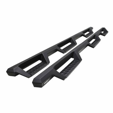 Westins HDX Drop Nerf Step Bars provide the rugged look and function that truck owners need and want. They feature a solid 1-piece steel construction and heavy duty punch plates creating high traction step areas. The HDX Drop Nerf Step Bars also feature Westins notched bar design which provides more than 2" of additional toe/heel placement versus competitive brands. Available in a textured black finish that complements Westin HDX Bumpers. The HDX Drop Steps have vehicle specific applications and include a vehicle specific mount kit, installation hardware and instructions.