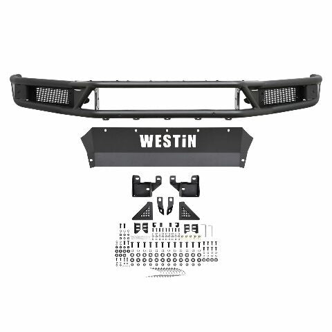 Westins Outlaw Front Bumper is made of strong 14 gauge steel that gives your truck the front end style, durability and function it needs. It features a 2" diameter tube frame with 1.5" diameter center tubes, and integrated bolt-on LED light mounts for up to two single or one double row 30" LED bar. Add an Outlaw Skid Plate or Outlaw LED Light Kit to enhance your vehicles look and strength on and off the road. Round LED Light Kit with Westin Auxiliary Lights or Square LED Light Kit with Westin HyperQ Auxiliary Lights sold separately. Mount kit included. Available in textured black finish.