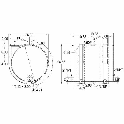 Side Mount Cylindrical Aluminum Reservoir: This reservoir works for many hydraulic/fluid storage applications and features 2 inch NPT suction/return ports on either end of the tank; Not for use with corrosive or explosive fluids. Versatile And Lightweight: The durable cylindrical design and aluminum construction offer a neat appearance and corrosion resistance; Includes mounting hardware, insulated mounting straps, and filler breather unit with basket strainer. More Than Just Parts: From snow and ice equipment to toolboxes, hydraulics, towing, truck and trailer hardware to our innovative lighting products—it’s amazing what Buyers Products can do for your truck. We Do Things The Right Way: We design products like we we’re building them for ourselves, because we are. Our teams are staffed with engineers and experts who know how to make a product exceptional. Durable and Dependable: Founded in 1946, Buyers Products has become a leader in the truck equipment industry though our commitment to customer care, innovation, and value across our range of products.