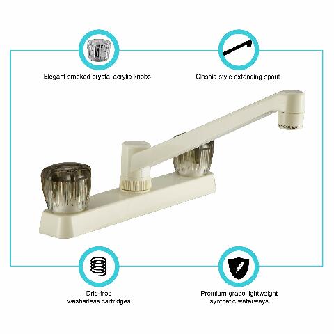 Dura Faucet DF-PK600S-BQ RV Kitchen Sink Faucet with Smoked Acrylic Knobs (Bisque Parchment)