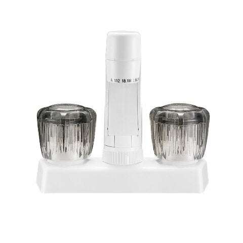 Dura Faucet DF-PK640S-WT RV Swivel Kitchen, Galley, or Bar Faucet with Smoked Acrylic Knobs (White)