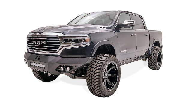Fab Fours' new line of light weight bumpers: Vengeance Series. These premium steel bumpers are constructed to be lightweight (Weighing only 75lbs) and offer a sleek and stylish finish for both the front and rear of your vehicle. Center Cutout for 20 in. LED light bar and mounting options on each side for (2) Rigid Industries' Dually's to give you maximum LED light coverage. The fit of this bumper is high and tight and comes with lower cutouts to provide airflow while also giving you that aggressive look both on and off the road. Available in a no guard or pre-runner guard option.