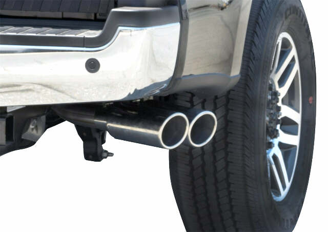 Cat-Back Dual Sport Exhaust System; 3 in. - 2.5 in. Tubing; 7in. Rd Body; 3in. Center In/2.5in. Dual Outlet; 4in. Polished Tip; Exit Behind Rear Tire;