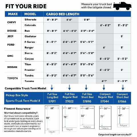 you park it! The Napier Sportz Truck Tent is the ultimate camping truck accessory that transforms your truck bed into a cozy, comfortable campsite, regardless of the terrain. Offering unbeatable comfort, proven durability, and premium features, this tent ensures your camping experience is unforgettable. Designed for road trips, overlanding, and tailgating, the Sportz Truck Tent lets you camp with comfort, confidence, and convenience. Elevate your camping game and enjoy a better night's sleep with Napier. Note: During assembly, ensure the tailgate pole is set up on the outside of the tailgate wires.