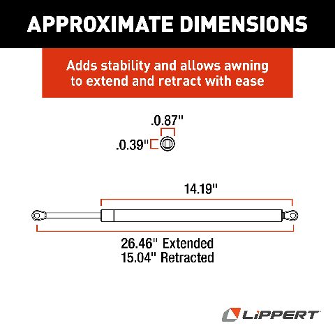 Solera 280343 Gas Strut - 26", 124 lb Compatible with Short and Flat Awning Arms, Black