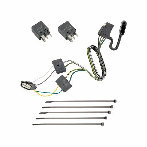 Replacement trailer wiring harness for vehicles originally equipped with a factory installed tow package - perfect for replacing damaged or missing factory harnesses. Quick and easy plug-in installation - no cutting or splicing necessary; Simply plug into the existing vehicle connector and you are ready to start towing. 16 gauge bonded wire with 4-flat plug and cap; 7.5 amp stop light/turn signal circuit capacity. Included 4-wire flat connector is compatible with 5, 6 and 7 pole adapters (not included) to fit just about any trailer system.