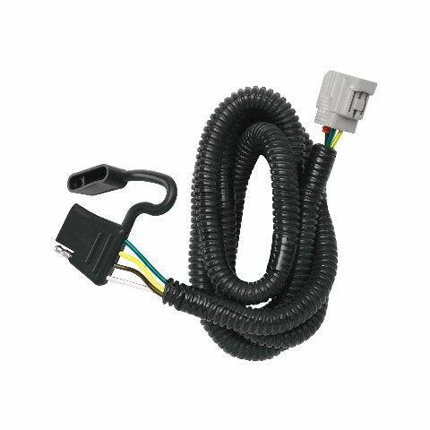 Replacement trailer wiring harness for vehicles originally equipped with a factory installed tow package - perfect for replacing damaged or missing factory harnesses. Quick and easy plug-in installation - no cutting or splicing necessary; simply plug into the existing vehicle connector and you are ready to start towing. 16 gauge bonded wire with 4-flat plug and cap; 7.5 amp stop light/turn signal circuit capacity. Included 4-wire flat connector is compatible with 5, 6 and 7 pole adapters (not included) to fit just about any trailer system.