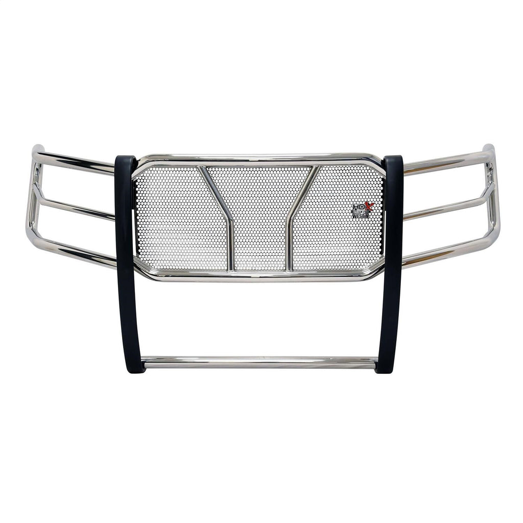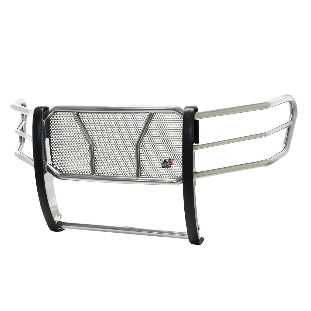 The HDX Grille Guard is the ultimate in extreme truck gear. Its a fully welded 1-piece grille guard that features full wraparound wings made of heavy duty 2" diameter tube. Uprights are finished and protected with extra wide rubber that is 1/8" thick and 2 3/4" wide resulting in a solid clean look. The full punch plate grille protects the vehicles grille area. HDX Grille Guards are available in stainless and black powder coat finish.