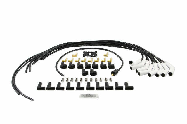 Extreme 9000 Ceramic Boot Spark Plug Wire Set; Universal w/Terminals For Male And Female Tower Caps; 8mm; 135 Deg. White Boots; 500 Ohms Per Foot; Black;