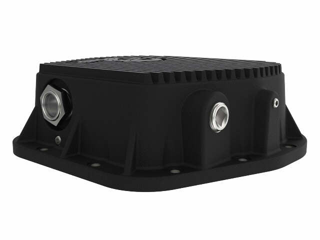 aFe POWER differential cover brings performance engineering to the protection of your trucks rear-end. This differential cover has a 5 quart lube capacity (factory cover holds 4 quarts) at the factory fluid level line, a magnetic drain plug and a magnetic fill plug to remove unwanted debris. Built-in external fins transfer heat from the fluid to the outside air for maximum cooling. aFe has also designed a large oil level sight glass with calibration plug set to the factory fluid level to eliminate overfilling. This differential cover is constructed out of durable die-cast A380 aluminum with reinforced ribs and a wrinkle black powder-coating for maximum strength and style. When it comes to engineering for power, performance, protection and value, aFe Power is the only choice.
