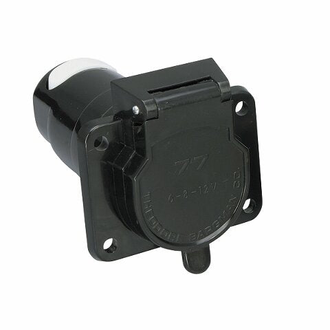 7-Way Thermo-Plastic Connector. 12-volt thermo-plastic connector with brass contact to prevent corrosion. Built-in cable clamp prevents wear on 7-Way cable. Unique method of forming contact pins provides for easy connecting and disconnecting. Style: Car End.
