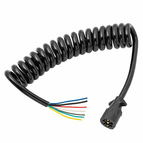 7 WAY TRAILER LIGHTS CONNECTOR: Universal, standard 7 way trailer cord splices easily to your new or existing trailer lighting system. HEAVY-DUTY APPLICATION: Made with self-cleaning contacts, the 8-foot length molded trailer cord prevents sagging wires and provides a neat, clean look. WEATHER RESISTANT: Fully jacketed non-corrosive assembly 7 wire trailer wiring harness protects inner wires from the negative effects of weather and hazardous road conditions (rated to -55 degrees Celsius/-67- degrees Fahrenheit). CONNECTIONS: Primary wire gauges within the insulated cable are: Black-White-Red-10 gauge, Blue-Brown-Green-Yellow-14 gauge. ABOUT BARGMAN: Since 1931, Bargman has been the electrical connection brand of choice in the light-duty trailer and recreational vehicle markets.