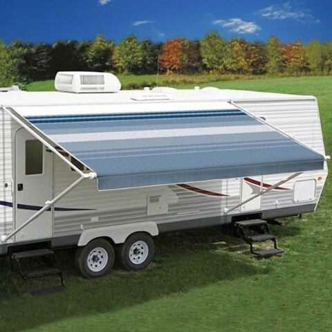 For 14 Foot Length Patio Awnings; 13 Foot 2 Inch Length x 8 Foot Extension; Black/ Gray Dune Stripe; Vinyl; With White Weatherguard; 1 Piece; Fabric Covers Front Of The Awning Roller And Valance Is Attached