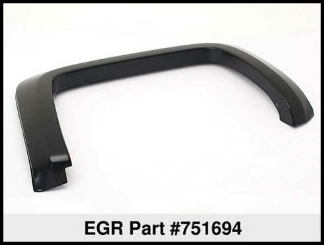 Secure no drill fitment proving a rugged appearance without the drilling. Protects bodywork with greater wheel coverage. Built tough using the highest quality of raw materials. EGR Fender Flares are manufactured to OEM Quality, and are robotically trimmed to give you the most precise fitment in the industry. American Made.