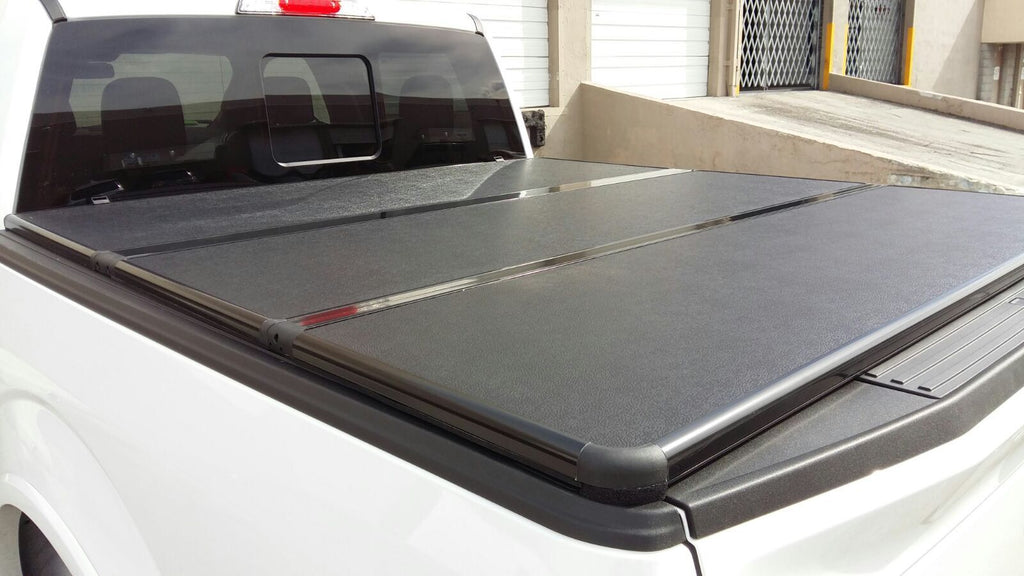 Designed with rigid, heavy-duty panels and a reinforced support structure, this hard tri-fold bed cover helps protect cargo from rain, dust, UV exposure, and road debris. The hard surface adds an extra layer of security compared to soft covers, making it a great choice for tools, equipment, and valuable gear. The tri-fold configuration lets you fold the cover forward for partial or full access to the bed, and the low-profile design helps reduce wind drag while enhancing your F-150’s overall appearance.