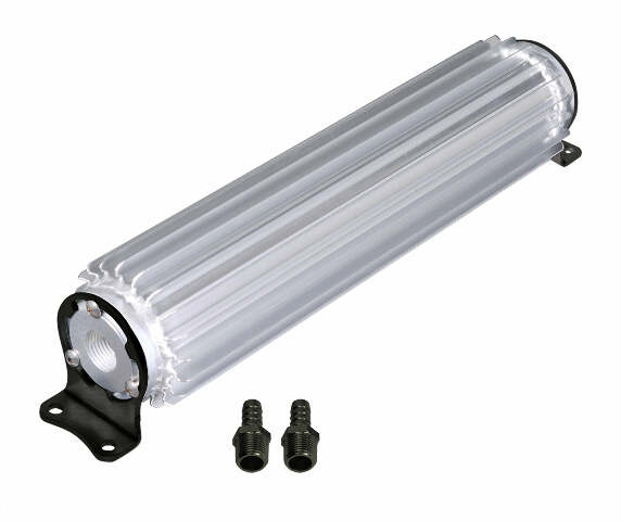 Our compact all aluminum Heat Sink cooler uses both external and internal fins to maximize heat transfer. With a 3" diameter it can be mounted in a variety of locations and the universal design can be used to cool a wide variety of components. Perfect for fuel and power steering applications, this powerful little heat exchanger can also be used to cool engine oil and transmission fluid in light duty applications. Includes hose barbs.