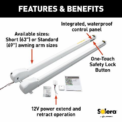 Solera 12V Smart Arm Awning Hardware Kit Compatible with 5th Wheel RVs and Travel Trailers - Standard - White