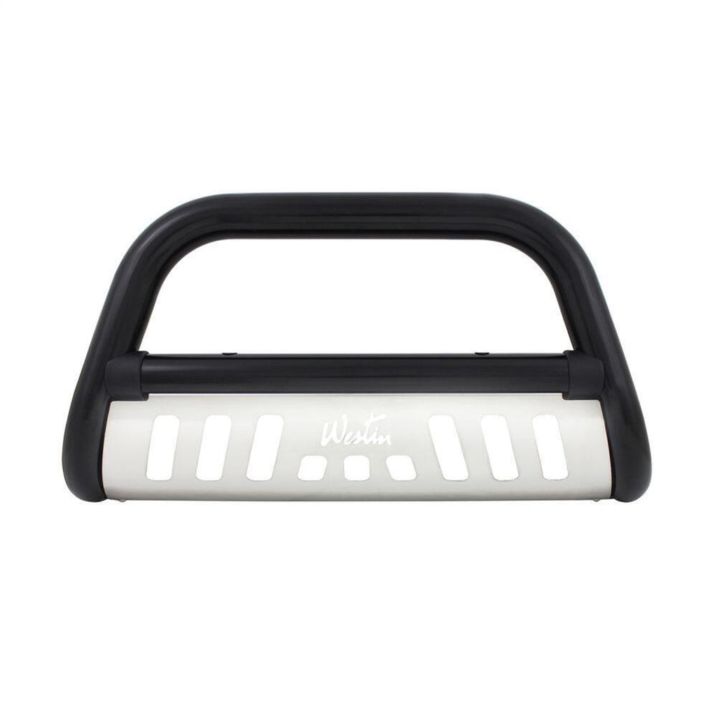The Westin(TM) Ultimate Bull Bar is a front-end light bar made of 3in. diameter tubing for larger model trucks and SUVs and made of 2.5in. diameter tube for smaller trucks and SUVs. Product application is vehicle specific and comes complete with mounting kit. The Westin(TM)Ultimate Bull Bar features black molded caps on the crossbar welds for a finished and clean look. It features a stainless steel skid plate with a laser-cut Westin signature logo on it. Add a set of Westin(TM) Driving Lights for a complete customized look.